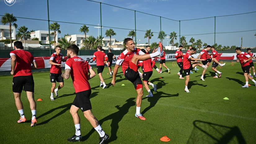 საწვრთნელ პროცესში 23 ფეხბურთელი მონაწილეობდა. გუნდთან ერთად საბა ლობჟანიძეს და გიორგი გულიაშვილს არ უვარჯიშიათ, რომლებიც ნაკრებს დღეს შეუერთდნენ.